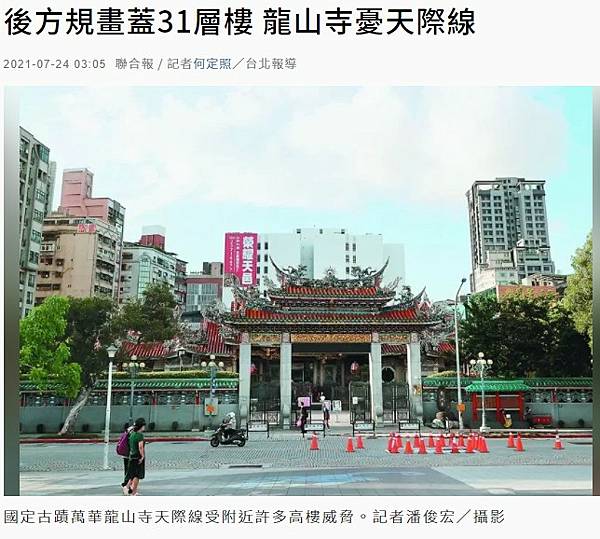 後方規畫蓋31層樓 龍山寺憂天際線 | 綜合 | 要聞 | 聯合新聞網 https://bit.ly/3eZxeN8