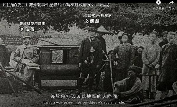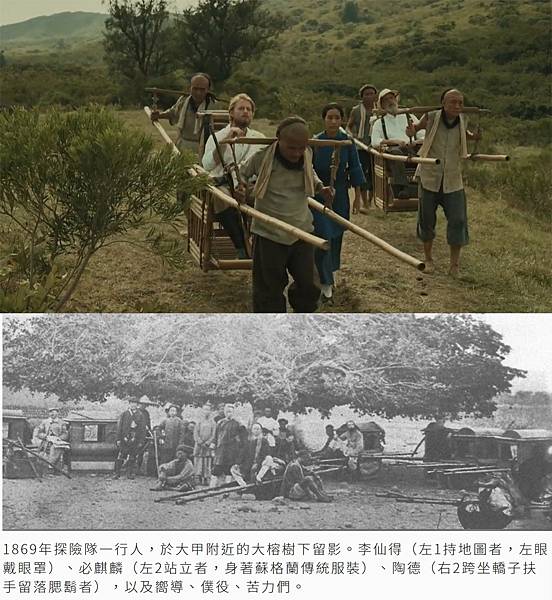 另一篇2018年由國立臺灣歷史博物館研究助理陳涵郁所寫的文章(連結請看留言處),也附上一張1869年時李仙得與必麒麟到高雄大甲照片,當時的轎子是有頂棚式的,與電視劇中兩人第一次進部落談判時搭乘的竹轎不同。