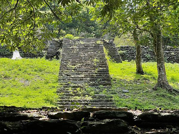 在更往上走便能看到神社的石階遺跡,照這個石階與石垣的位置來推測,這個位置設有鳥居,是進入神社的重要指標。