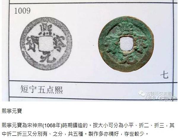 熙寧通寶以鐵錢為主,有小平、折二兩種,熙寧通寶」小平鐵錢較少見,銅錢存世量數以枚計,極其稀少。另有折二,折五鐵母存世。