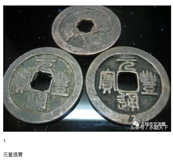 「元豐通寶」錢,有銅小平、折二錢、鐵錢三種,書體有篆書、行書、隸書,是北宋神宗元豐年間鑄造的錢幣。元豐錢鑄量之大,版別之多,為兩宋之冠,就小平錢而言,就有400種之多。