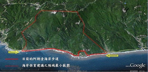 三、之前所謂「阿塱壹古道」是從屏東縣牡丹鄉旭海村沿海岸北上經觀音鼻到台東縣達仁鄉楓港溪的南田村,並未北上至達仁鄉和大武鄉交界的安朔溪(舊稱阿塱壹溪)一帶,以「阿塱壹古道」稱之,無法反映實際狀況。