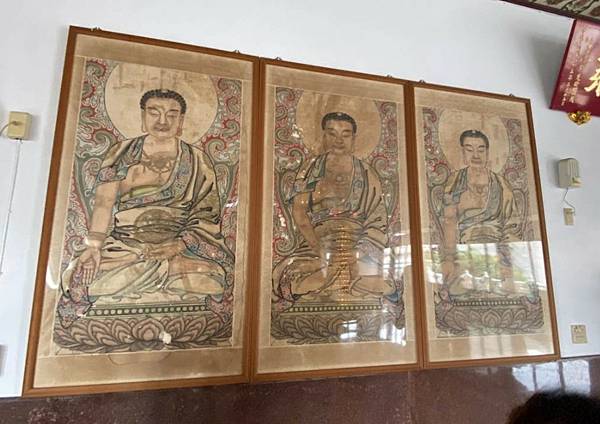 嘉義縣朴子市高明寺彌陀殿供奉的西方三聖像是台灣少見具有日式風格的佛像且雕工細膩,已獲經費進行第二次調查。(嘉縣文觀局提供/張亦惠嘉縣傳真)