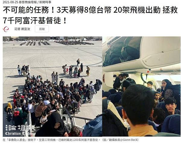不可能的任務!3天募得8億台幣 20架飛機出動 拯救7千阿富汗基督徒! https://bit.ly/3BsR6kK