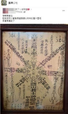 有民眾分享阿公家有裱框類似符咒的物品,結果有其他網友回覆自家也有。(圖/翻攝自靈異公社)© 由 TVBS新聞網 提供 有民眾分享阿公家有裱框類似符咒的物品,結果有其他網友回覆自家也有。(圖/翻攝自靈異公社)