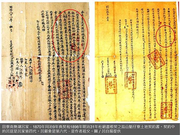 作者呂家祖先約於乾隆年間1770年,向烏山西麓水蛙潭社番,典買荒山環繞的南勢湖土地耕墾定居,並典買其他山林耕作。其中一筆烏山魁仔寮山林地,1870年同治9年開始承典,於日治時代1898年明治31年立「杜絕盡根契」買斷為呂家所有。