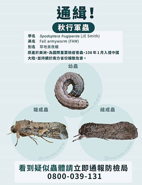 目前本島還都只發現幼蟲,若本島發現成蟲,就進入第二階段會強制噴藥,若仍無法抑制群體大量繁殖,我國就要與秋行軍蟲共存的打算。