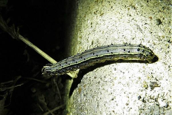 分秘夜蛾幼蟲(如圖)與秋行軍蟲四齡蟲相似。(照片提供/莊汶博)