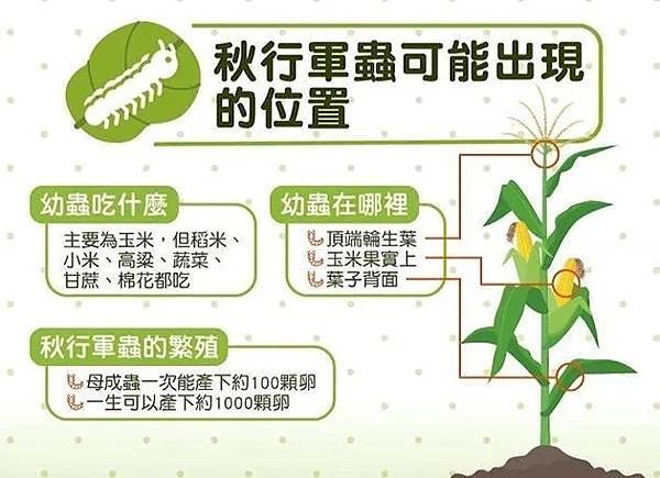 台灣目前發現的都是吃青割玉米,推斷是從中國飄來,若從越南飄來,則偏好吃水稻;估計是10、20天前飄來的,這2到3週是關鍵期。