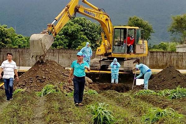位在宜蘭縣大同鄉樂水部落玉米田通報的秋行軍蟲害確診,啟動銷毀作業,同步由怪手挖洞和拔除掩埋。圖片來源:聯合新聞網/宜蘭縣政府提供