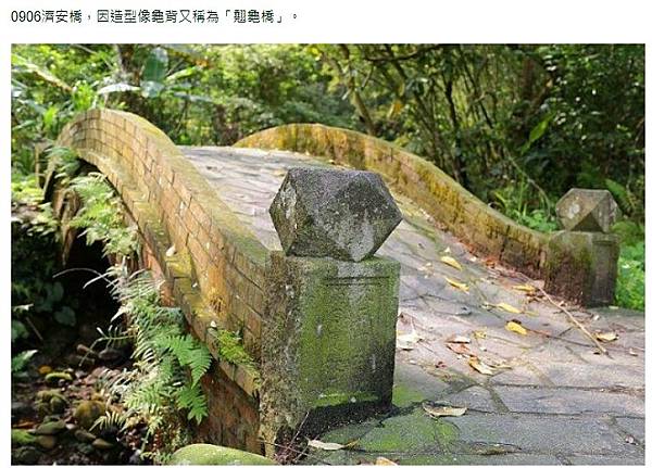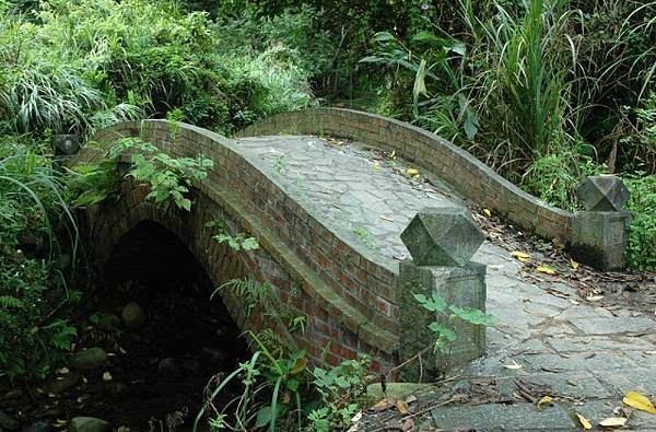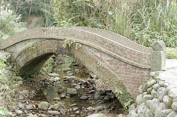 大溪打鐵寮古道上的「濟安紅磚駝龜拱橋」橋上鋪石花紋如龜背紋