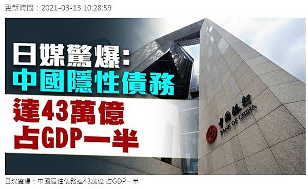 日媒驚爆:中國隱性債務達43萬億 占GDP一半 - 新唐人亞太電視台 https://bit.ly/3CAt73N