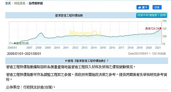 臺灣營造工程物價指數-指標趨勢圖-基金-MoneyDJ理財網