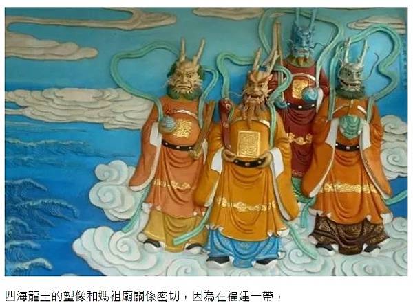 四海龍王的塑像和媽祖廟關係密切,因為在福建一帶,