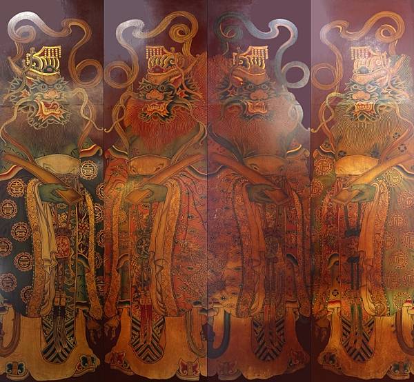 這組門神多年來拍過數次,但都不理想,所以遲遲未貼 四海龍王門神,日前再次前往,還是沒拍好,只好將就貼出來。幾部提到 龍王的通俗演義中,《西遊記》中 美猴王入東海借兵器,對 東海龍王的損失算是詼諧帶過,魏徵斬 渭水龍王那段,也算 龍王是自作自受。但是《封神榜》中 哪吒殺了 龍王三太子 敖丙,又打傷狀告 天庭的 東海龍王 敖光。《東遊記》八仙過海,八仙大鬧東海,龍王死了兩位太子,奔南海,驚動 四海龍王。