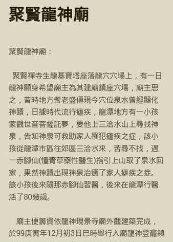 之後龍王廟的規模應該有擴大,根據總督府檔案記載,該廟有前後兩堂,可能是擴充為兩進的意思。