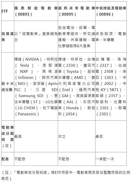 近年來,電動車產業迅速崛起,勢不可擋,國內投信業者也看準這波商機,紛紛募集相關ETF,近3個月國內就有3檔電動車主題ETF推出,包括國泰的智能電動車ETF(00893)、富邦的未來車ETF(00895),及中信的綠能及電動車ETF(00896)。此外,永豐的「台灣智能車供應鏈ETF」也已送件審查,預計今年底之前也會上市。