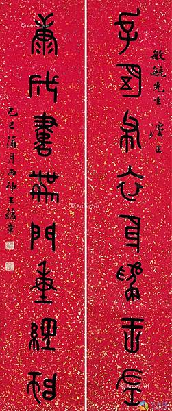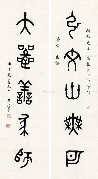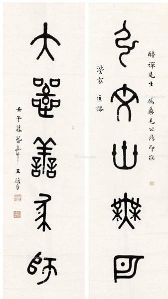 【拍卖价格】 王蕴章(1884~1942) 1815 金文八言联 立轴 https://bit.ly/3BvIv16