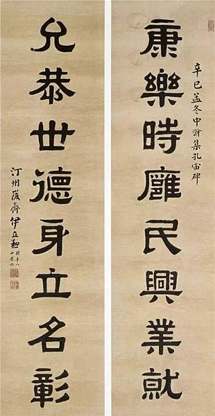 “ 敷天箕福 ,寰海鏡清”對聯。對聯中可以參悟到人們希望天下太平的美好祈願。