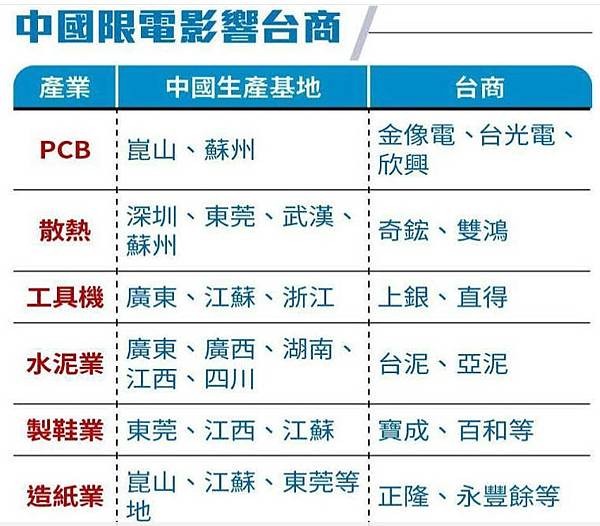 傳產業吹起調漲風,集中在江蘇、浙江一帶的台灣電子廠也因限電,正在醞釀漲價潮。本土法人指出,PCB(印刷電路板)產業受衝擊明顯,訂單都延到第四季,如金像電已停工,恐影響NB、消費型產品和中低階伺服器,定穎則仰賴庫存彌補停電損失。