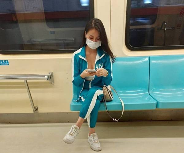 南韓影集《魷魚遊戲》在全球大爆紅,討論度極高,劇中的演員全部身價翻漲,粉絲數更是成長幅度驚人,成為近期最受關注的影集之一;對此,就有一名男網友在捷運上發現一名妹子穿著《魷魚遊戲》主角穿的「綠色運動服」,照片一曝光,網友們全被她「超胸猛」的氣場給震懾,紛紛跪求IG。