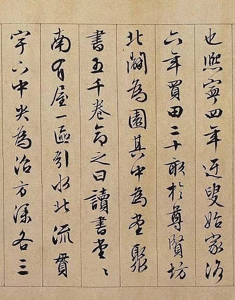 行書長卷《獨樂園圖並書記卷》,作於1558年,是文徵明89歲高齡時所創的作品。該作品前有畫幅(縱27厘米,橫141.3厘米),以王蒙筆法畫司馬光獨樂園圖;後有書幅(縱27厘米,橫488.5厘米),內容為司馬光的《獨樂園記》和7首獨樂園詩以及蘇軾所作的獨樂園詩,現藏於台北故宮博物院。