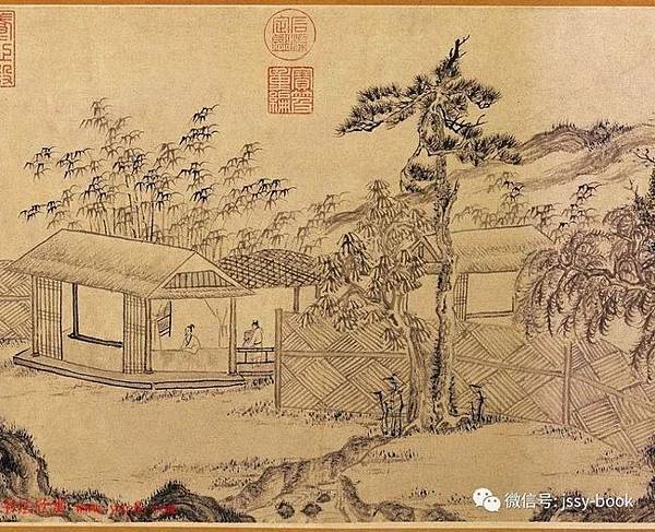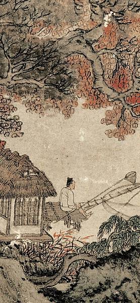 再與王蒙的《葛稚川移居圖》相比,便可看出它們所呈現的狀態完全不同,倘若說錢選的《羲之觀鵝圖卷》可以定義為線性風格,那麼《葛稚川移居圖》便可視為涂繪風格。