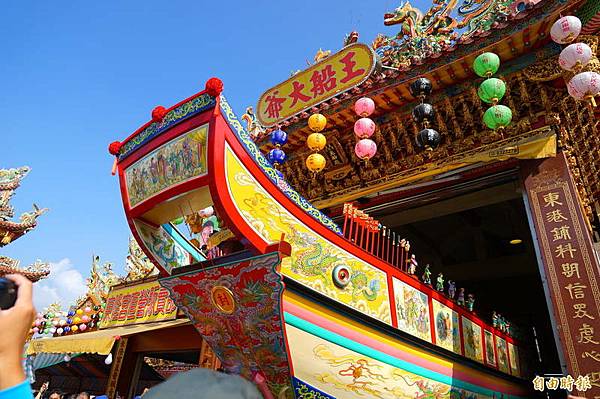 (中央社記者郭芷瑄屏東縣30日電)屏東東港鎮東隆宮迎王平安祭今天進入倒數,明天清晨將燒王船,今天下午進行「遷船」,王船遶遍東港鎮「收煞」的壯觀陸上行舟,錯過再等3年,東港警分局也建議最佳觀看地點。