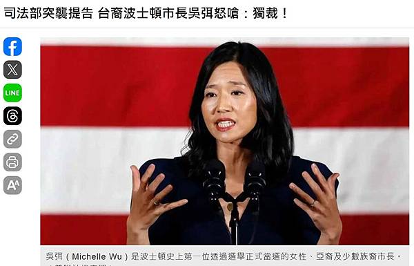 司法部突襲提告 台裔波士頓市長吳弭怒嗆:獨裁! - 國際 - 自由時報電子報