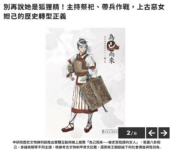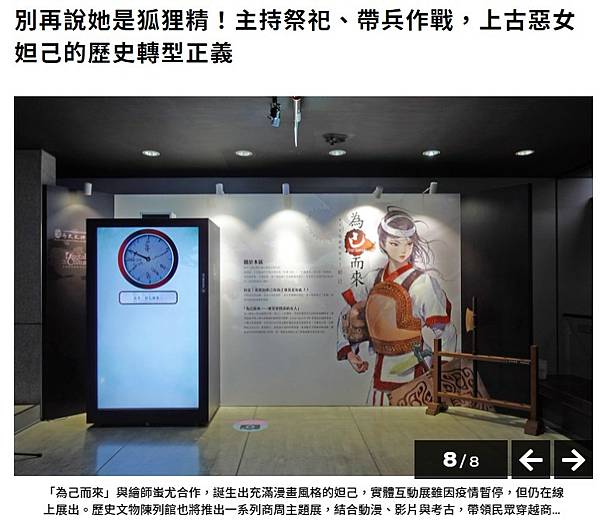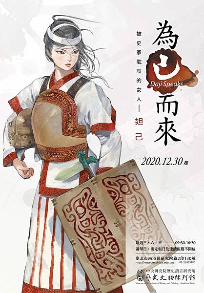 中研院歷史文物陳列館推出實體互動與線上展覽「為己而來——被史家耽誤的女人」,策畫八卦妲己、穿越商朝等不同主題,根據考古文物和甲骨文記載,還原商王朝脈絡下的社會價值與性別角色,建構出與傳統印象迥然不同的將軍妲己。