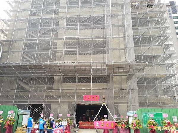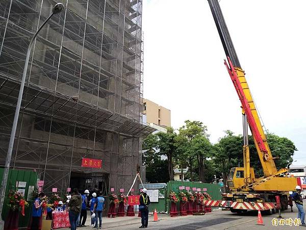 新竹縣政府在竹北市新建首座綜合社會福利館,因疫情期間營建大宗資材通貨膨脹,中央和地方攜手加碼5000多萬元至總經費2.6億元,工程今天舉行上樑儀式,預計2022年年底完工開幕。(記者廖雪茹攝)