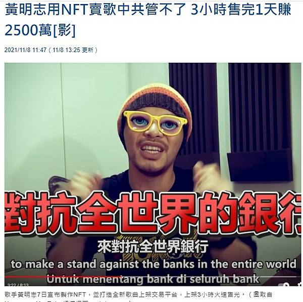黃明志用NFT賣歌中共也管不了 3小時爽賺2700萬變富翁
