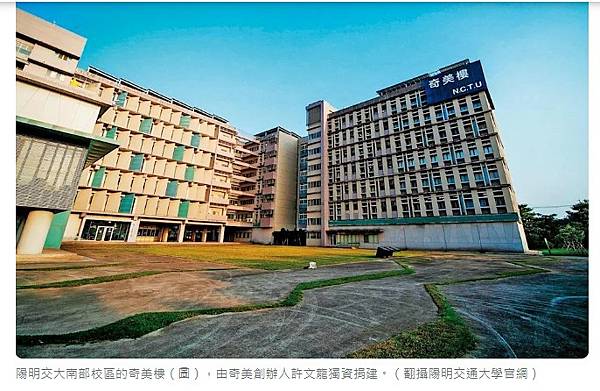 陽明交大南部校區的奇美樓(圖),由奇美創辦人許文龍獨資捐建。(翻攝陽明交通大學官網)