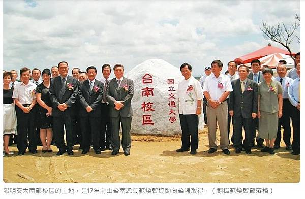 陽明交大南部校區的土地,是17年前由台南縣長蘇煥智協助向台糖取得。(翻攝蘇煥智部落格)
