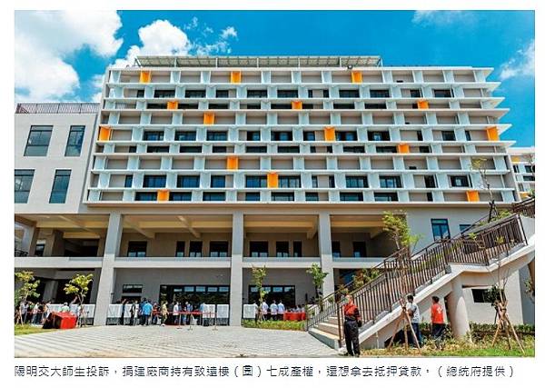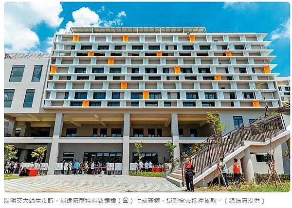 陽明交大師生投訴,捐建廠商持有致遠樓(圖)七成產權,還想拿去抵押貸款。(總統府提供)