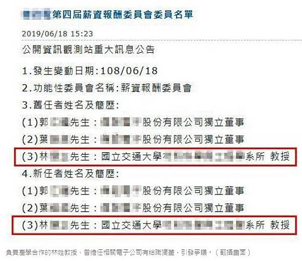 負責產學合作的林姓教授,曾擔任相關電子公司有給職獨董,引發爭議。(翻攝畫面)