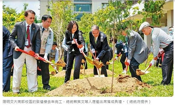 陽明交大南部校區的致遠樓去年完工,總統蔡英文等人應邀出席落成典禮。(總統府提供)