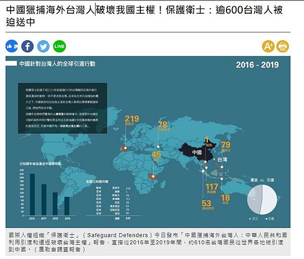 中國獵捕海外台灣人破壞我國主權!保護衛士:逾600台灣人被迫送中 - 政治 - 自由時報電子報 https://bit.ly/3G7TEXI