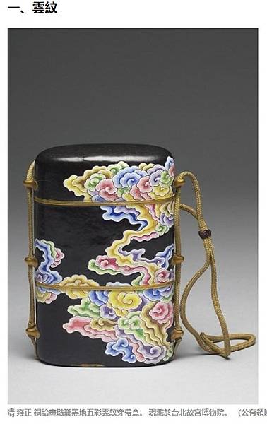 雲紋:玉器上的雲紋形式很多,有單岐雲,由雲頭、雲尾兩部分組成;有雙岐雲,雲頭部分分叉;有三岐雲,雲頭部分分為三朵小捲雲;還有靈芝雲等。