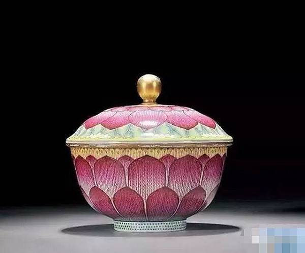 清道光 粉彩蓮瓣蓋碗