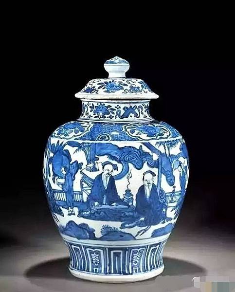 明萬曆 青花高士圖蓋罐