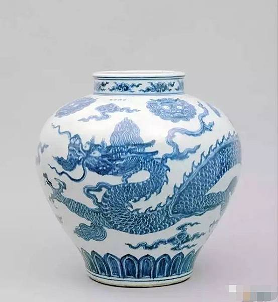 2、蓮瓣內均繪有圖案。元青花蓮瓣紋的外廓由外粗內細兩條線構成,瓣內的圖案十分豐富。其中最常見的是如意雲紋。如意雲紋的畫法有兩種:一種只用細線條將圖案勾勒出來;另一種勾勒出輪廓後用青料將雲紋塗滿。雲紋多為三重垂弧,最上面一層的彎角深深地向里勾卷。雲紋下面多配有圓形或點狀裝飾。