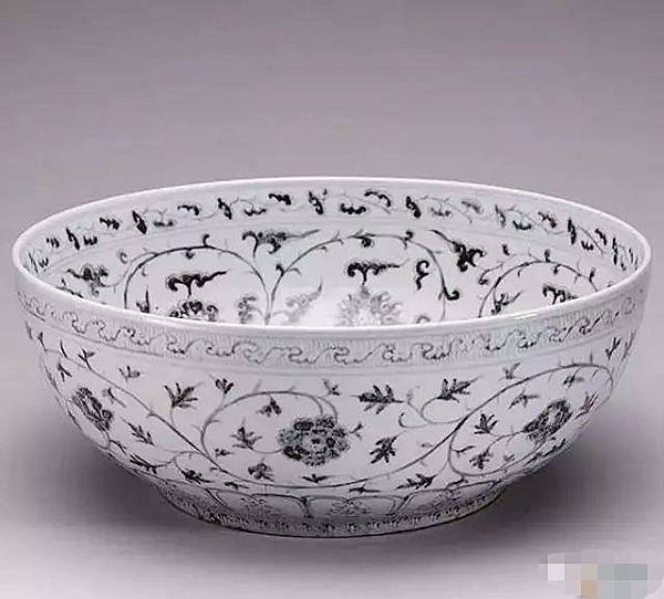 2、以青托白。以青花為地留出白花的技法元代已經流行,許多元青花大盤在盤心交替使用白地青花和青花地白花,形成色調上的反差,具有獨特的藝術效果。永宣時期青花地白花主要用於邊飾,如常見的蓮瓣紋、蕉葉紋、海滔紋等都大量採用這種方法。深色的帶狀邊飾與白地青花的主題紋飾相互映襯,別有一番情趣。