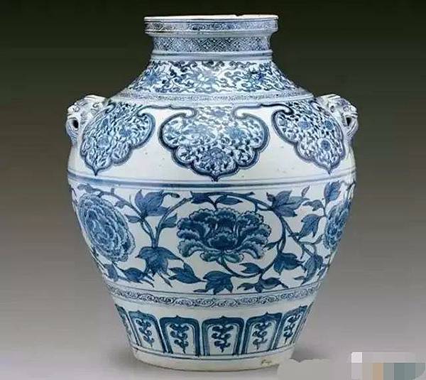 元青花 纏枝牡丹紋雙耳大罐