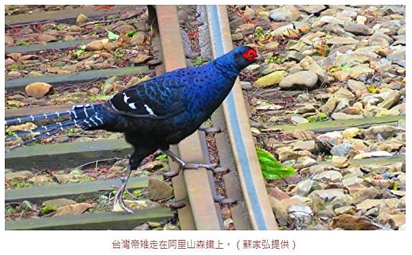 台灣帝雉走在阿里山森鐵上。(蘇家弘提供)
