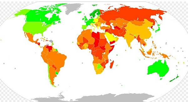 國際透明組織公佈2018年全球貪腐指數,顏色越深國家代表貪腐程度越嚴重。(transparency.org)