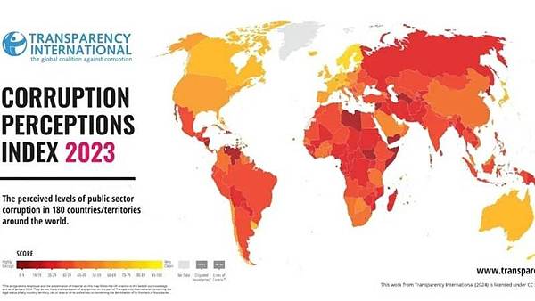 國際透明組織(TI)公布2023年全球清廉印象指數。(取自國際透明組織官網)