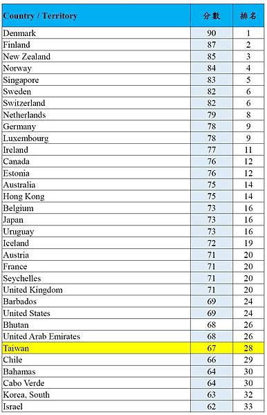 2023全球清廉印象指數公布 台灣排名28 - 政治 - 自由時報電子報 https://bit.ly/3ShQIQe