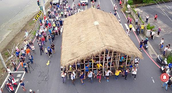 「一二、一二」扛茨的民眾喊聲著,上午從興安宮扛到扛到曾文溪畔堤防,首次回到先民居住的地方,單程1.5公里,同時有66人扛屋前進,平均每50公尺休息1次,下午再扛回興安宮,已經是黃昏。