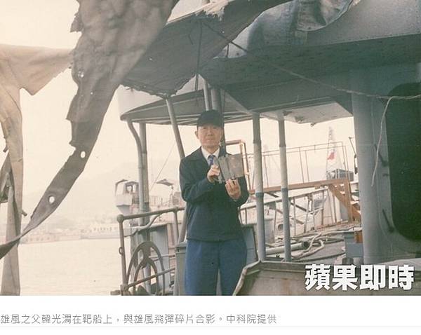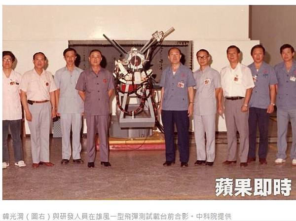 民國77年2月,蔣經國總統逝世不久,國軍正式宣布雄二飛彈的存在。78年3月的「旭鋒八號」演習,首度命中目標。81年,正式登艦服役。這段期間的雄風計畫小組,召集人正是韓光渭。